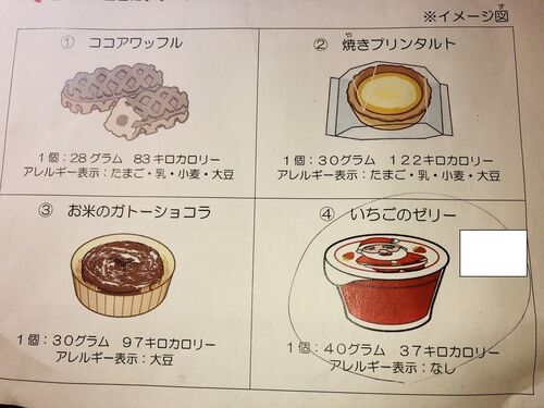 『おたのしみ給食』の希望表 が来ました~!! 12月の2学期最後の給食の日のデザートを4つの中から1つ選べるというものです。 ①ココアワッフル ②焼きプリンタルト ③お米のガトーショコラ ④いちごのゼリー です。 息子は『ココア』がアレルゲンのため自ず…