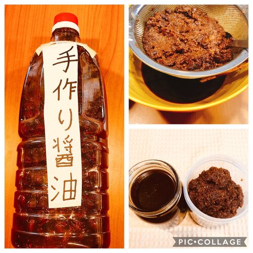 『手作りしょうゆ完成!!』 道ノ尾のkuriyaさんでの醤油教室で、息子と昨年2月に仕込んだ醤油がついに完成しました~!! というか、とっくに完成していたけど放置・・・ やっと濾して、醤油と諸味に分けました~(^^; 諸味、大活躍です!! カットしたキュ…