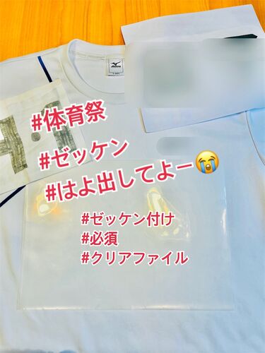 『 #体育祭 #ゼッケン #はよ出してよ ー( ;∀;)』 私にとって #ゼッケン付けに #必須な #クリアファイル 前身頃と後身頃の間にクリアファイルを入れてゼッケンをつけると、裏の布まで縫うことがありません♪♪ っていうか、うちの息子 ゼッケンはよ出してよ~( …