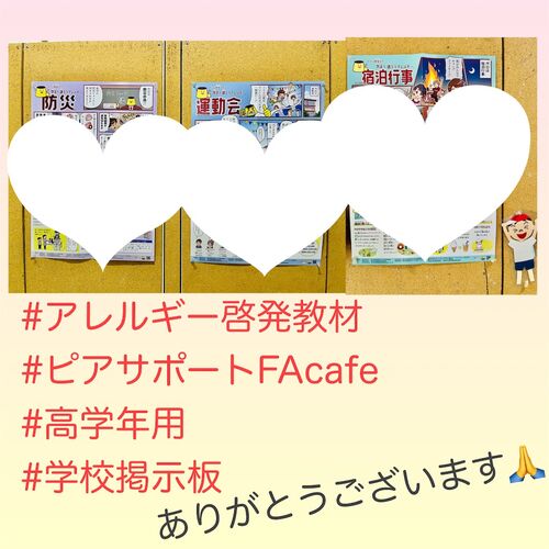 『 #アレルギー啓発教材 #ピアサポートFAcafe #高学年用 #学校掲示板 』 神奈川県藤沢市の NPO法人ピアサポート F.A.cafe さんのアレルギー啓発教材を勤務先の学校でも掲示しております。 https://www.facafe.org/educational 管理職に提案してお取り寄せ。 …