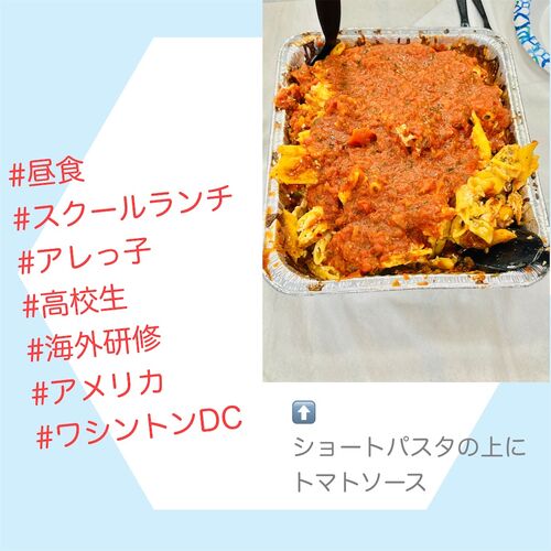 『 #lunch #アレっ子 #高校生 #海外研修 #アメリカ #ワシントンDC 』 姉妹校でのランチ♪♪ 連絡が途絶えがちなアレっ子ー 疲れているのか、既読スルー( ;∀;) 何を食べているのか写真だけでもマジお願いします!! ショートパスタの上にトマトソース がのって…