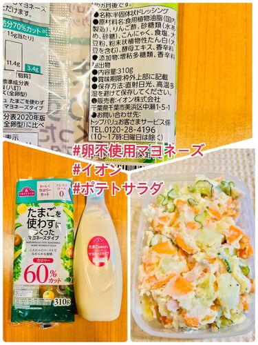 『 #卵不使用マヨネーズ #イオン #ポテトサラダ 』 仕事でポテトサラダを作るので自宅でデモ。 #卵不使用 の #マヨネーズ イオンで #たまごを使わずにつくったマヨネーズタイプ を購入。 原材料名 ↓↓↓ 食用植物油脂(国内製造)、りんご酢、砂糖類(水あめ、砂…