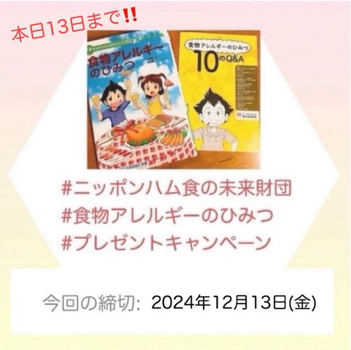 『 #ニッポンハム食の未来財団 #食物アレルギーのひみつ #プレゼントキャンペーン 』 ニッポンハム食の未来財団さん、いつもありがとうございます! 食物アレルギーに関する本のプレゼントキャンペーン中♡ くわしくは↓のwebサイトへ https://www.miraizaidan…